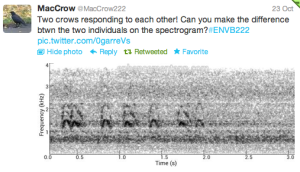 The use of social media in the classroom would not be complete without Twitter! The groups have set up twitter accounts, and within 48 hours of their posts going live, they will be tweeting a series of facts related to their study species! This is another informative, collaborative and fun way to seek input into their projects, and a way to bring what they have learned out to the broader community of biologists. Follow along! You can simply use the hashtag #ENVB222 to track the tweets related to the project. (by the way, you can follow the Beech tee group @BBDteam ). Here are a couple of examples of other tweets: