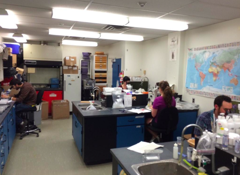 The Arthropod Ecology lab is a busy place. It has desks, computers, and microscopes. Often, when walking into the lab, you see lots of students looking into microscopes: